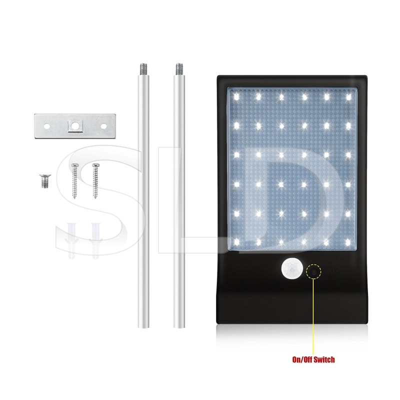 - Solar ultra-thin wall lamps with 36 bright LEDs;
